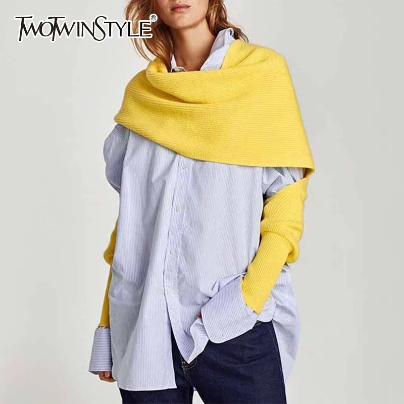 Special Offer Женский вязаный шарф TWOTWINSTYLE, толстый теплый шарф в Корейском стиле, весна осень 2019 Discount 40% Today!