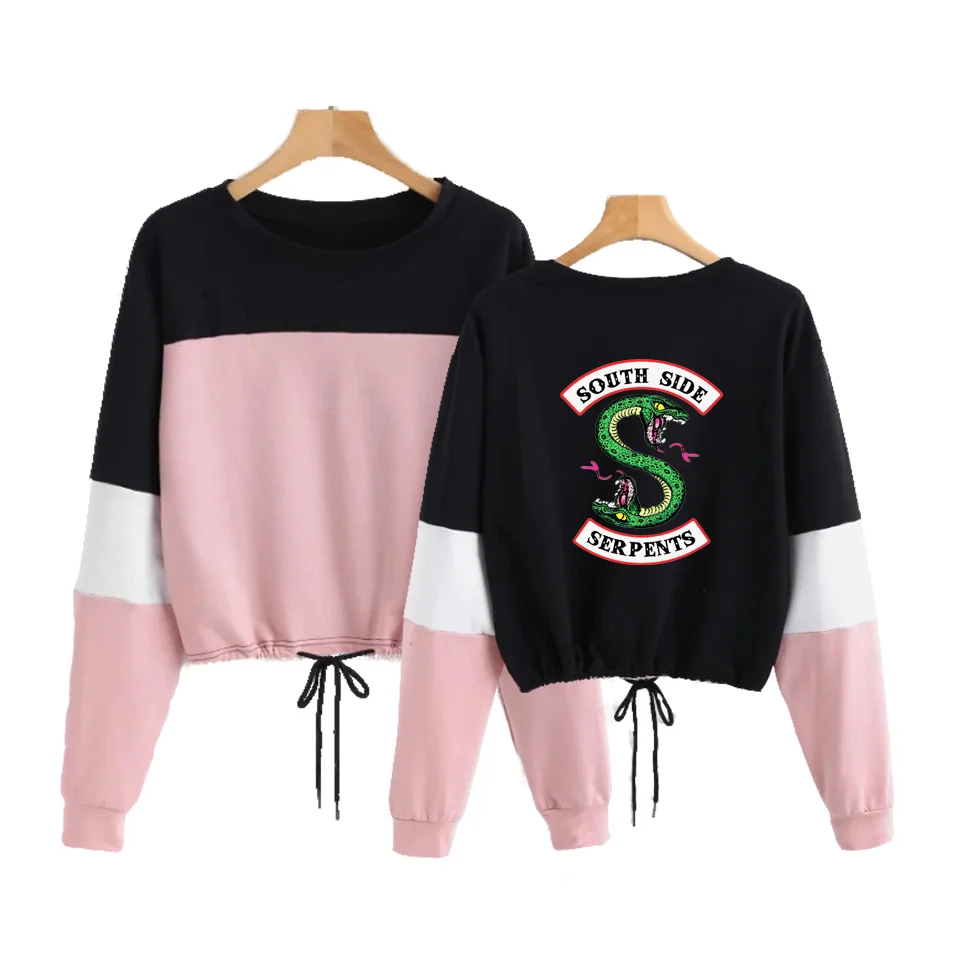 Product Name: Женская Повседневная Толстовка с длинным рукавом и круглым вырезом, контрастный Топ, 2019