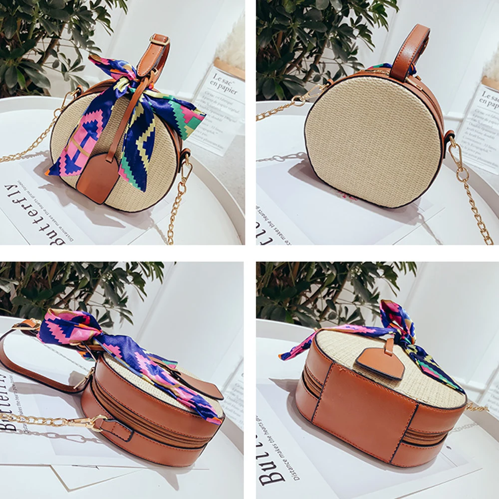 Product Name: Женская соломенная сумка, сумки через плечо для девочек, модные шарфы, круглая седельная сумка из ротанга, тканые сумки через плечо, дамская ...
