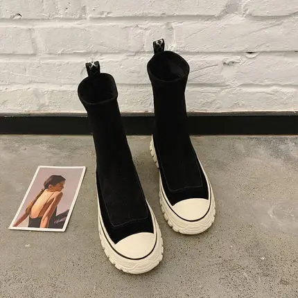 Special Offer Женские ботинки; коллекция 2019 года; сезон осень; эластичные ботинки; короткие ботинки; высокие кроссовки; женская обувь на толстой платформе... Discount 51% Today!