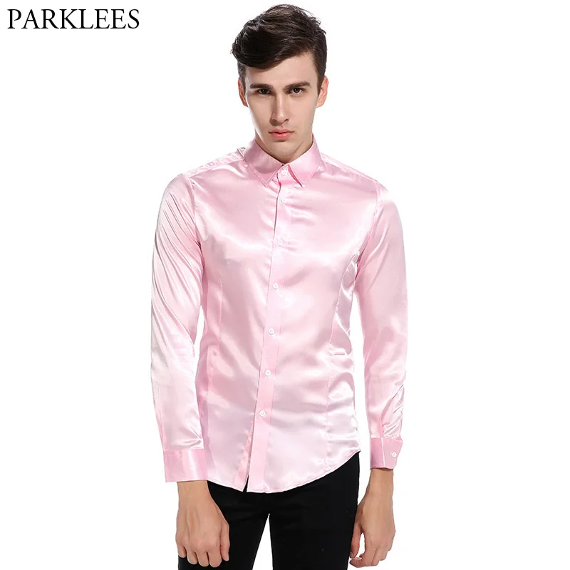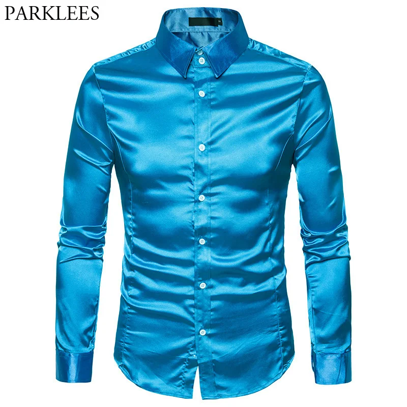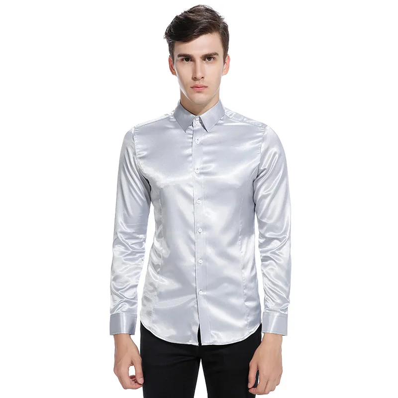 (52% Off) Купить Шелковая атласная рубашка для мужчин 2017 осенние мужские рубашки с длинным рукавом приталенные из имитирующего шелка повсе... Цена Дешево