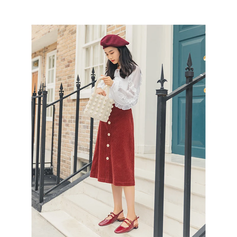 (65% Off) Купить INMAN весна осень молодой литературный стиль лиоцелл хлопок вельвет сплошной минимализм ретро Женская юбка Цена Дешево