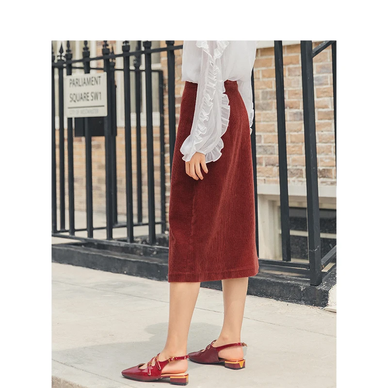 Special Offer INMAN весна осень молодой литературный стиль лиоцелл хлопок вельвет сплошной минимализм ретро Женская юбка Discount 65% Today!