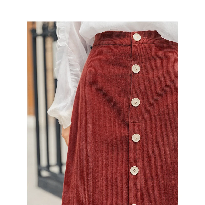 Product Name: INMAN весна осень молодой литературный стиль лиоцелл хлопок вельвет сплошной минимализм ретро Женская юбка