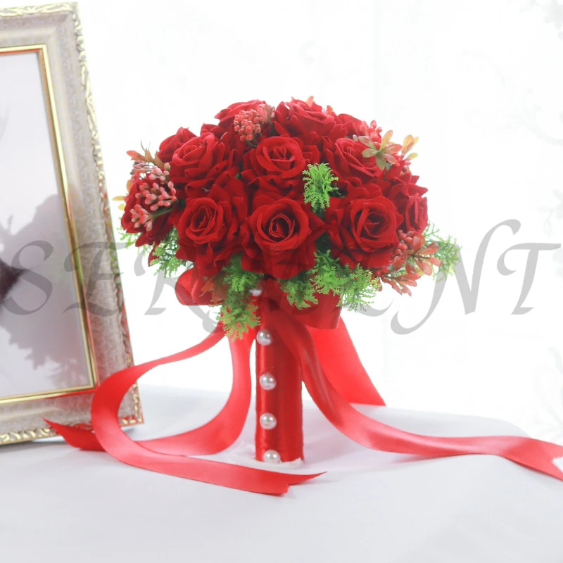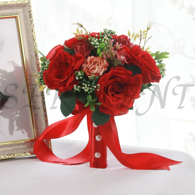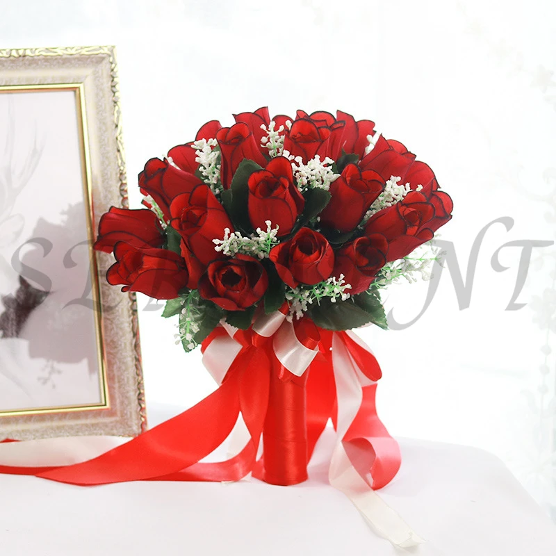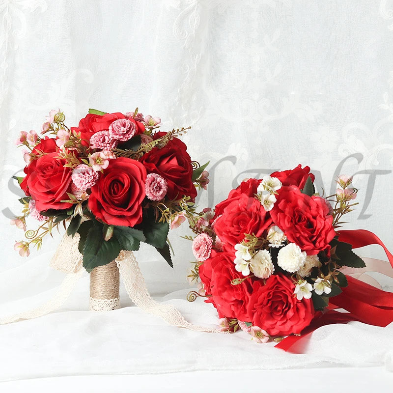 (8% Off) Купить OLLYMURS роза искусственные пеньковые веревки ручка 30 см букет роз Бесплатная доставка Свадебные аксессуары красный Продажа Дешево